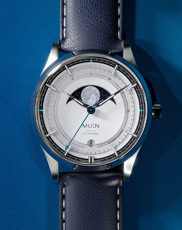 Mu;nUm der „Artemis II Space Mission“, deren Ziel es ist, bis 2027 vier Astronauten zum Mond zu senden, Tribut zu zollen, stellt Mu;n ihr neuestes Modell vor. Die „Orion Series Moon Phase“ wird gänzlich in der Schweiz gefertigt und begeistert durch ihre äußerst realistische und leuchtende Mondphasen-Komplikation. Diese detailgetreue Abbildung des Sterns konnte dank spezieller Fertigungstechniken in der Realität umgesetzt werden und lässt sogar einzelne Krater auf der Mondoberfläche erkennbar werden. Das Zifferblatt besteht dabei aus drei Teilen, die sich zu zwei Ebenen verbinden und verschiedene Strukturen aufweisen, wodurch interessante Kontraste entstehen. Innerhalb des 38 Millimeter großen, polierten sowie satinierten Edelstahlgehäuses arbeitet das SW 288-1a Automatikkaliber von Sellita. Ab September dieses Jahres soll die Neuvorstellung auf Kickstarter im Vorverkauf für unter 1.000 Euro erhältlich sein. Der reguläre Listenpreis des am Leder- oder Edelstahlband getragenen Modells wird bei etwa 1.350 Euro liegen.