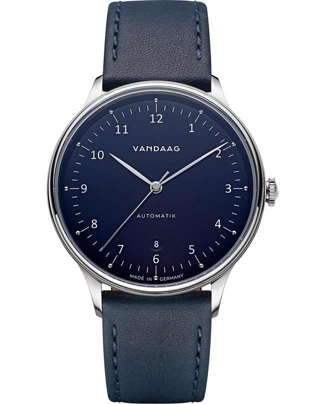 VandaagRetro-Look gepaart mit reduzierter, aber dennoch spannender Optik – das gelingt Vandaag mit der „Primus Automatik“. Die 40 Millimeter große, polierte Edelstahluhr besitzt ein in zahlreichen Farben erhältliches, fein gewölbtes Zifferblatt, das neben klar ablesbarer arabischer Ziffern zusätzlich über ein unauffälliges, auf sechs Uhr platziertes Datum verfügt. Bis fünf Bar Druck ist zudem das automatische Miyota 8215 Kaliber geschützt, das für zuverlässigen Antrieb sorgt. Die jeweils auf 999 Exemplare limitierte Edition wird am Lederband getragen und verleiht dem eigenen Handgelenk bereits ab 399 Euro einen gewaltigen Coolness-Schub.