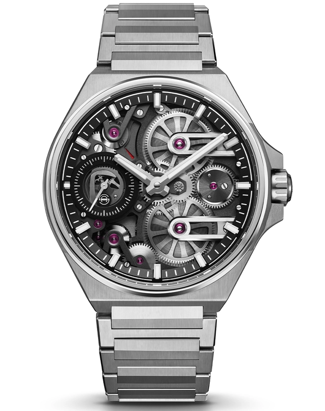 Armin StromTechnikliebhaber brauchen dank Armin Strom keinen Röntgenblick. Die neu vorgestellte „One Week Titanium Skeleton“ verfügt über eine aufwendige Skelettierung des Zifferblatts und lädt dabei förmlich dazu ein, die Feinmechanik des Handaufzug-Manufakturkalibers ARM21-S näher zu betrachten. Neben eine Gangreserve von satten sieben Tagen, die auf der elf-Uhr-Position abgelesen werden kann, sorgt ebenfalls eine kleine Sekunde für Abwechslung. Zur einfacheren Ablesbarkeit wurde die auf 100 Exemplare limitierte, bis zehn Bar Druck wasserdichte Edition mit Superluminova ausgestattet. Ein integriertes Band komplettiert den 41 Millimeter großen Zeitmesser, der komplett aus Titan gefertigt ist und umgerechnet etwa 41.000 Euro kostet.