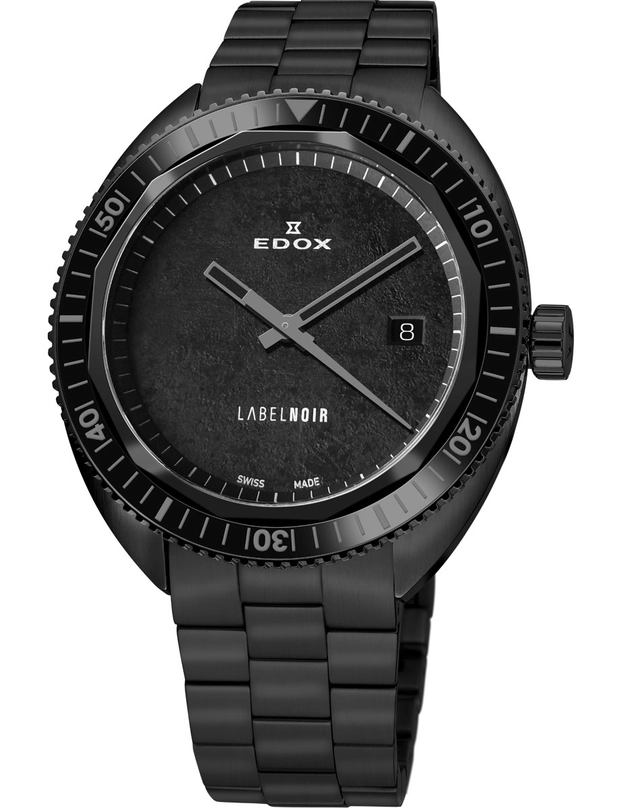 Edox bringt von seiner 2021 neu aufgelegten Taucheruhr Hydro-Sub eine Limited Edition ganz in Schwarz: Die Hydro-Sub Chronometer Label Noir Edition ist in enger Zusammenarbeit mit dem Genfer Uhrenveredler Label Noir entstanden. Ihr zentrales Feature ist das schwarze Zifferblatt. Seine aufgeraute Oberfläche entsteht durch einen 6-wöchigen Oxidationsprozess, der eine einzigartige Patina entstehen lässt. Als Inspirationsquelle diente die natürliche Oxidation von Metallen in maritimen Umgebungen. Ein schwarze Beschichtung und eine Schutzschicht nach außen vervollständigen die Fertigung. Auch sonst sind die wesentlichen Komponenten der Uhr schwarz: Das gilt für das PVD-beschichtete Gehäuse und Stahlband genauso wie für die aus Keramik gefertigte, einseitig drehbare Lünette. Schwarzes Superluminova auf Stunden- und Minutenzeiger sowie den Indexen sorgen für eine ordentliche Nachtablesbarkeit,