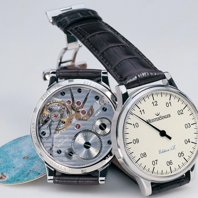 Die Edition 1Z war im Jahr 2004 Meistersingers erste Editionsuhr mit echtem Emaille-Zifferblatt. Das damals auf 222 Exemplare limitierte Modell stach mit seinem raffiniert hergestellten Zifferblatt besonders hervor. Die Herstellung eines Emaille-Zifferblattes ist ein hochkomplexes und zeitaufwändige Verfahren. Jedes Zifferblatt wird dabei zu einem Unikat und fasziniert durch seinen handwerklichen Charakter.