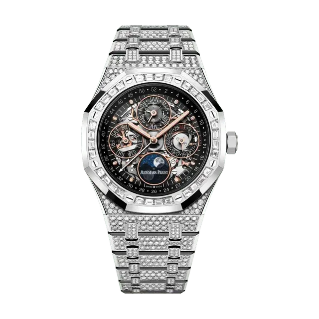 François-Henri Bennahmias, CEO von Audemars Piguet, wird im Zuge der Partnerschaft zitiert, dass die Zusammenarbeit eine gezielte Anerkennung von Scotts weitreichendem Einfluss ist, sowie seine Fähigkeit hervorhebt, bedeutende Anhängerschaften zu mobilisieren. Das Highlight der Kollektion wird mit Sicherheit der Royal Oak-Zeitmesser sein. Parallel dazu sollen attraktive Merchandise-Artikel für Staunen bei Scotts treuer Fangemeinde und Audemars Piguet-Liebhabern sorgen.Travis Scott selbst gilt als begeisterter Watch-Collector, in seiner Sammlung sollen sich mehrere Audemars Piguet Zeitmesser befinden. Zuletzt wurde er unter anderem mit der Royal Oak Ewiger Kalender Sonderedtion Ref. 26625BC.ZZ.1223BC.02 gesichtet. Diese Sonderedition aus Weißgold ist vollständig mit Brillantschliff-Diamanten besetzt. 994 Diamanten mit insgesamt ca. 9,74 Karat befinden sich auf der gesamten Uhr. Angetrieben wird die Uhr vom Klaiber 5135 mit 40 Stunden Gangreserve.Sieh dir diesen Beitrag auf Instagram an