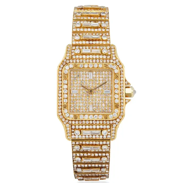 Cartier Santos Carrée, 18K Gold mit nachträglichem Diamantbesatz, Ref. 2964, Gehäuse Nr. 400'435, ca. 1990 | Uhrwerk: Automatikzifferblatt: Diamantbesetzt, Gehäuse: 27 x 39 mm | Schätzwert: €14.000-18.000