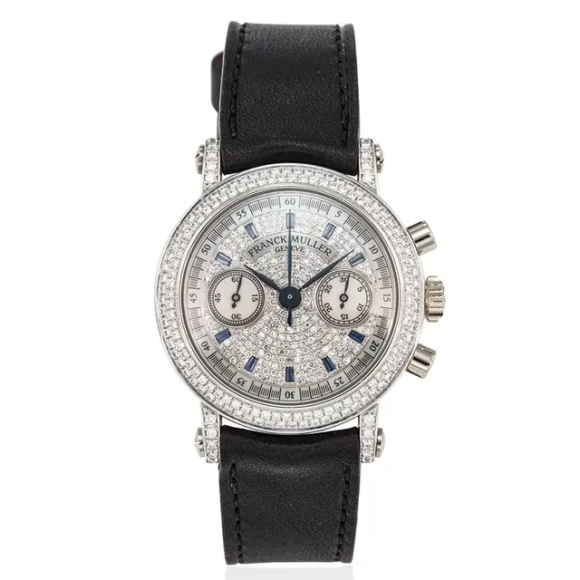 Franck Muller, 18K Weißgold, diamantbesetzter Chronograph, Pave-Zifferblatt mit Diamant, Saphir und Perlmutt, Ref. 2865 Nad, ca. 1990S, Uhrwerk: Manuell, Gehäuse: 39 mm Durchmesser, Schätzwert: €7,300-11,000