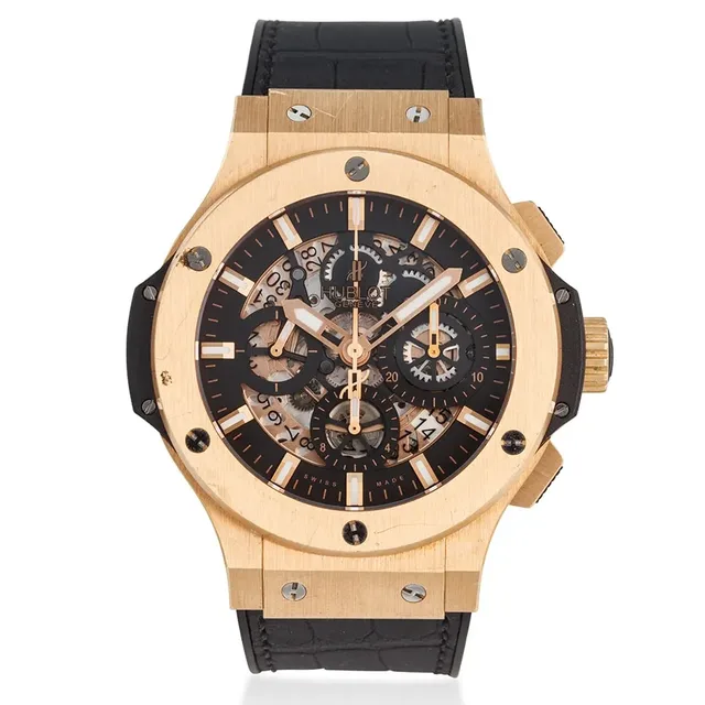 Hublot, Ref. 311.Px.1180.Gr, Big Bang Aero Bang, Chronograph aus 18-Karat-Roségold, Skelettiertes Zifferblatt mit Datumsanzeige, ca. 2010s, Gehäuse-Durchmesser: 44 mm, Gehäuse Nr': 919569, Uhrwerk: Automatik, Schätzwert: €7,300-11,000