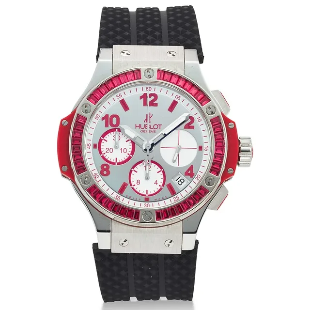 Hublot, Big Bang "Tutti Frutti", Chronograph aus Edelstahl und Titan, Edelsteinbesatz, Datumsanzeige, ca. 2010s, Gehäuse-Durchmesser: 41 mm, Gehäuse Nr': 852359, Zifferblatt: Mirror, Uhrwerk: Automatik, Schätzwert: €7,300-11,000