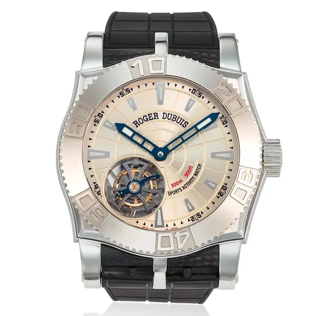 Roger Dubuis, Ref. Se48 02 9, Easy Diver, limitierte Auflage aus Edelstahl und 18K Weißgold mit Tourbillon, ca. 2000s, Gehäuse-Durchmesser: 48 mm, Gehäuse Nr': 089/280, Zifferblatt: Champagner, Uhrwerk: Handaufzug, Schätzwert: €9,100-16,000