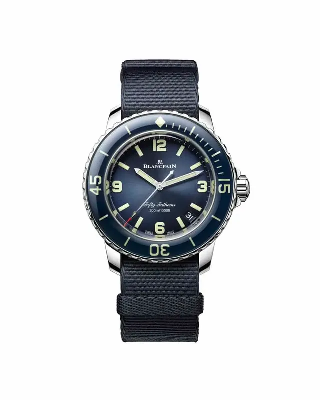 Das 70-Jahre-Jubiläum bezieht sich darauf, dass die Schweizer Firma Rayville, Nachfolgerin der historischen Blancpain, 1952 von der französischen Marine den Auftrag erhielt, eine widerstandsfähige Taucheruhr zu bauen. Diese wurde 1953 fertig und zeichnete sich unter anderem aus durch große Leuchtziffern und -indexe, die einen starken Kontrast zum schwarzen Zifferblatt bildeten, sowie eine rastende Lünette. Diese konnte man nur bewegen, wenn man sie nach unten drückte, somit war sie gegen unbeabsichtigtes Verstellen geschützt. Die Fifty Fathoms gilt damit neben der Rolex Submariner, die auch 1953 erschien, als erste wirkliche Taucheruhr.