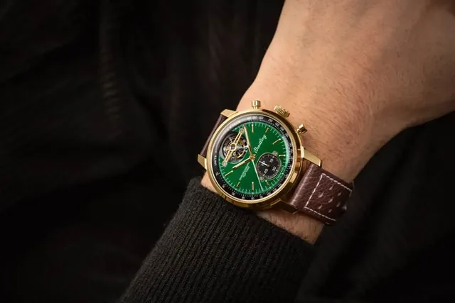 Jetzt ziert das Werk drei Modelle, die drei legendären Automobilen gewidmet sind: Ford Mustang, Shelby Cobra und Chevrolet Corvette. Optisch sticht die Top Time B21 Ford Mustang heraus: Das liegt vor allem an ihren 43 mm großen Bronzegehäuse mit Titanboden, aber auch an dem grünen Zifferblatt, das den Farben des Ford Mustang der ersten Generation entspricht, der von 1964 bis 1974 produziert wurde.