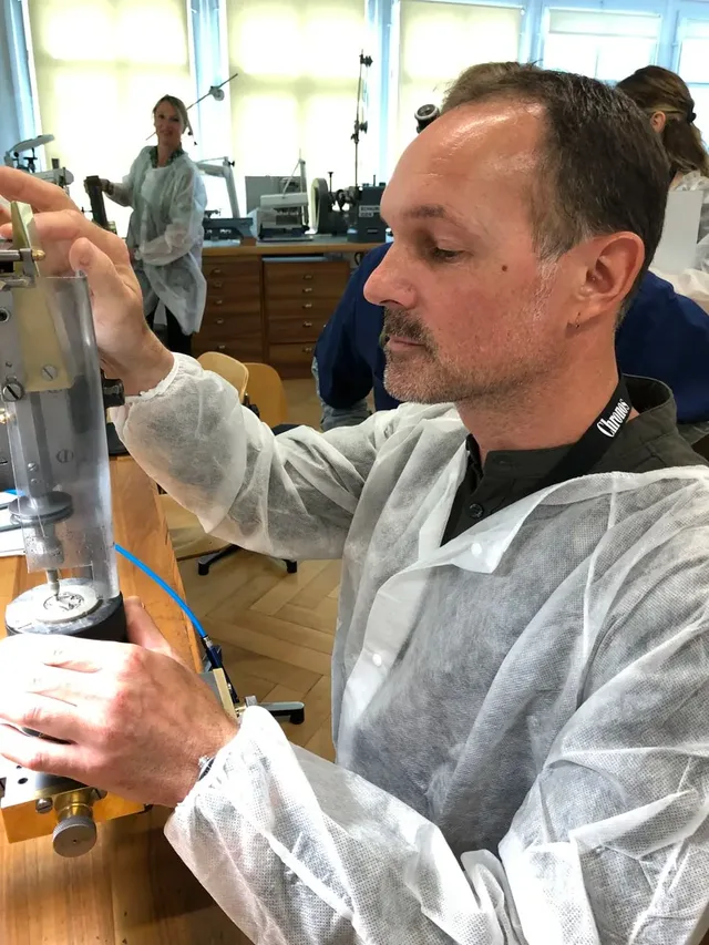 Nach einem üppigen Abendessen und einer erholsamen Nacht stand am Donnerstagvormittag noch einmal ein echtes Schmankerl für Mechanikfans auf dem Programm: Die Manufaktur der Traditionsmarke Zenith erstreckt sich über 18 Gebäude in Hanglage, von denen die Gruppe mehrere treppauf, treppab erkundete und dabei Einblicke in Design, Konstruktion, Verzierung, Montage, Regulierung und Qualitätskontrolle gewann.