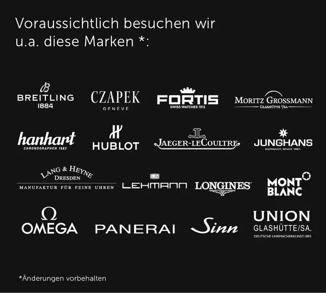 Nachfolgend finden Sie alle Termine für das Jahr 2023 und die Uhrenhersteller, die wir voraussichtlich besuchen werden – es stehen zum jetzigen Zeitpunkt noch nicht alle Marken fest und es wird sicher noch Änderungen und Ergänzungen geben.