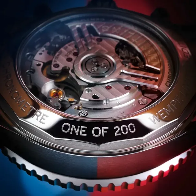 Mit indigoblauem Zifferblatt und vergoldeten Applikationen sowie der Gehäusegröße von 43 Millimetern ist dieser legendäre Fliegerchronograph ansonsten nicht erhältlich.