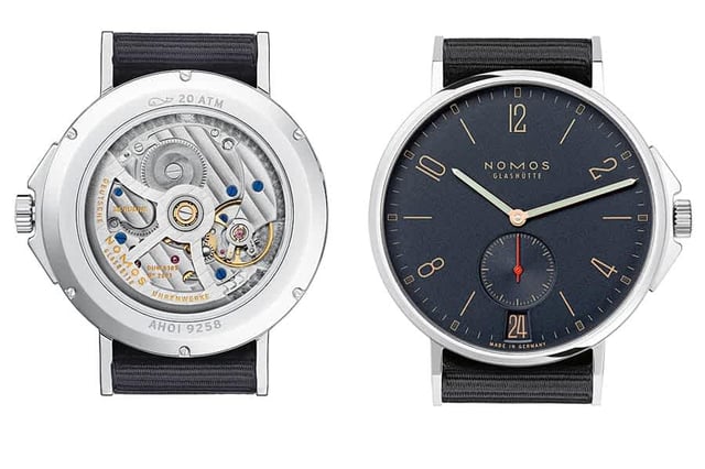 Nomos Glashütte: Manufakturkaliber DUW 5101 in der Ahoi Atlantik mit Glashütter Gesperr, Streifenschliff und zweibahnigem Sonnenschliff