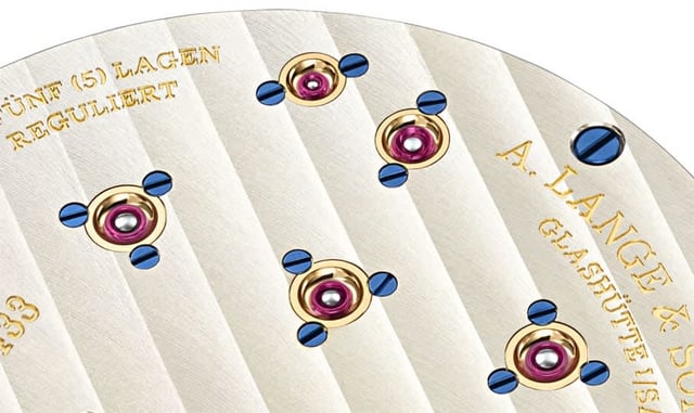 Goldchatons sind typisch für die Uhrwerke von A. Lange & Söhne und anderen Glashütter Marken