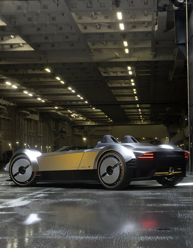 Die Idee war es, ein einfach zu bedienendes Auto zu integrieren. Wir haben uns sofort für einen Spider entschieden, also ohne Dach, mit einer kurzen Windschutzscheibe, abgerundeten Form, der Integration von viel Schwarz, Elemente die die Blende aufnehmen und selbst mit den inneren Teile an die Inspiration erinnern soll. Das Armaturenbrett ist einfach gestaltet, aber mit vielen Aluminiumstäben, resultierend in einem einfachen Farbschema mit Aluminium und Schwarz. Das Schwierigste war, die Form, die Karosserie, die Proportionen und den Charakter des Bulgari Vision Gran Turismo zu definieren. Wir begannen, tonnenweise Skizzen anzufertigen, hatten eine Menge Diskussionen, um die Karosserie und die Proportionen zu definieren.