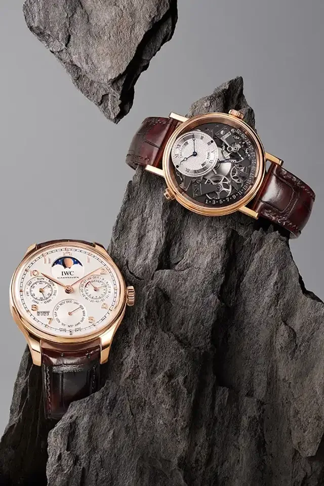 Echte Klassiker: IWC Portugieser Perpetual Calendar (45.900 Euro) und Breguet Tradition Quantième Rétrograde 7597 (42.000 Euro)