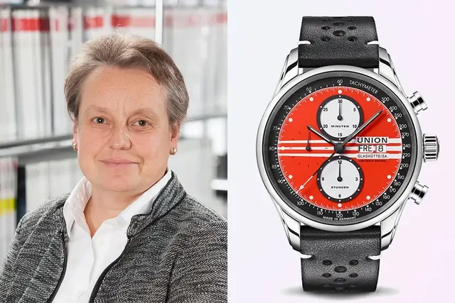 Martina Richter entscheidet sich beim Retro-Trend für die Union Glashütte Viro Chronograph Silvretta Classic 2023