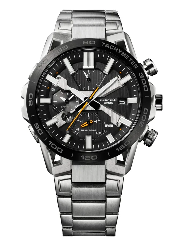 Casio schickt einen neuen Edifice Connected Chronograph ins Rennen. Der Edifice EQB-2000 Connected Chronograph geht in zwei Farbvarianten an den Start: ganz in Edelstahl oder mit mittels Ionenplattierung geschwärztem Band.