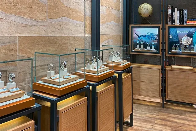 Vitrinen mit Uhren aus Vorbesitz in der Frankfurter Boutique