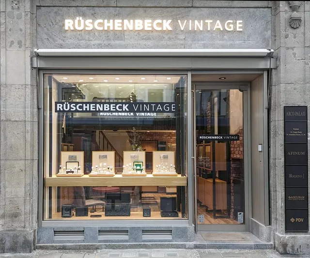 Rüschenbeck Vintage in München, Maffeistraße 4: Eingang und Vitrinen