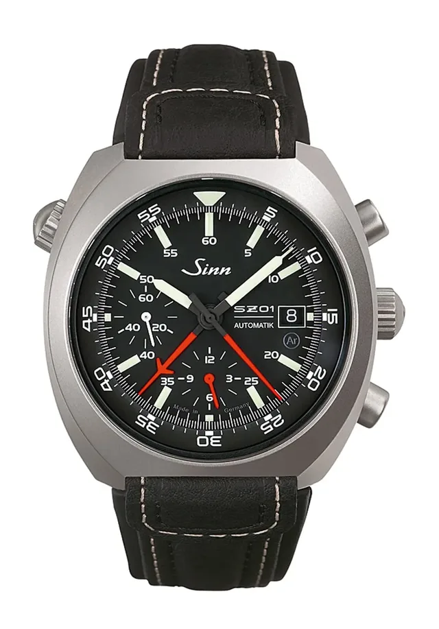 Der deutsche Astronaut Reinhard Furrer trug im Jahr 1985 während der Spacelab D-1-Mission eine Sinn 140 in schwarz beschichtetem Edelstahl, bei der auf die 24-Stunden-Anzeige verzichtet wurde. Helmut Sinn verkaufte dem Astronauten Furrer und zwei seiner Kollegen diese Uhren – mit 25 Prozent Rabatt, wie er Jahrzehnte später erklärte. Auch heute noch, längst unter der Ägide von Lothar Schmidt, gibt es die Sinn 140 in der Kollektion. Das Modell 140 barg damals ein Lemania 5100 in sich und wies ursprünglich eine 24-Stunden-Anzeige auf der Zwölf-Uhr-Position auf.Bis heute wurde der Weltraumchronograph 140 umfassend weiterentwickelt und arbeitet mittlerweile mit einem eigenen Automatikwerk, dem Kaliber SZ01, auf der Basis des erprobten Eta-Valjoux 7750. Ganz wie das legendäre Lemania 5100 verfügt das SZ01 über einen Minutenstoppzeiger aus dem Zentrum. Heute ist das perlgestrahlte Edelstahlgehäuse mit der Tegiment-Technologie oberflächengehärtet, während die Ar-Trockenhaltetechnik das Innere des Chronographen vor Feuchtigkeit schützt. Das kissenförmige Gehäuse misst 44 Millimeter im Durchmesser, bleibt bis 100 Meter wasserdicht und besitzt einen innenliegenden Fliegerdrehring. Heute findet sich der Stopper als 140 St in der Kollektion und kommt entweder an einem Lederarmband (4.280 Euro) oder einem Massivarmband (4.630 Euro).