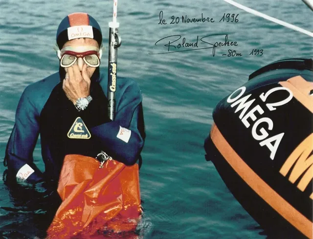 Roland Specker brach 1993 den Süßwasser-Freitauchrekord: 80 Meter mit nur einem Atemzug. Mit dabei: der Seamaster Professional Chrono Diver
