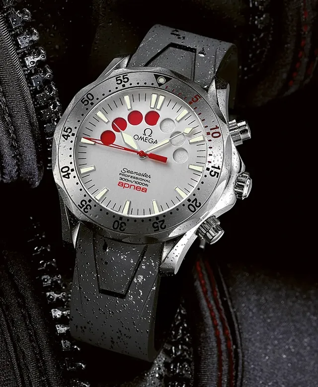 Speziell für Freitaucher entwickelt: die 2003 vorgestellte Seamaster Apnea mit sieben runden Fenstern für die Tauchzeitmessung bis 14 Minuten