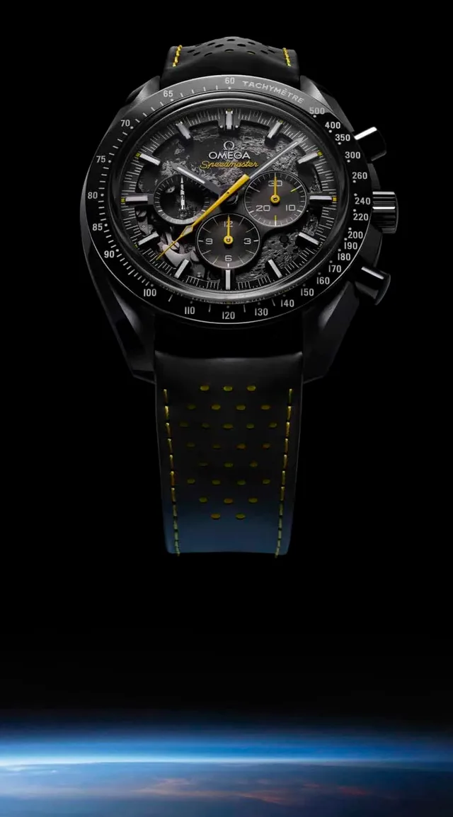 Omega stellte 2018 die erste Speedmaster Dark Side of the Moon Apollo 8 mit Keramikgehäuse und Werkgravuren in Form der Mondoberfläche vor. Nun kommt der Nachfolger des Erfolgsmodells mit Co-Axial-Werk und noch detailreicher.