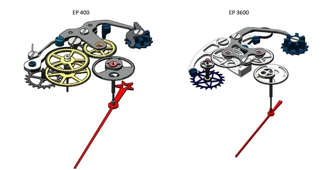 Der wesentliche Unterschied des El Primero 3600, das in seinen Grundfesten dem El Primero 400 vollkommen gleicht, besteht darin, dass auf der Achse des Sekundenrades nun kein zweites mehr die Verbindung zum Chronographen-Zentrumsrad und damit dem Stoppsekundenzeiger in der Mitte herstellt. Stattdessen baut eine patentierte Räderkupplung – ähnlich einem Foudroyante-Mechanismus – eine direkte Verbindung zwischen dem Hemmungsrad und dem Chronographen-Zentrumsrad auf.