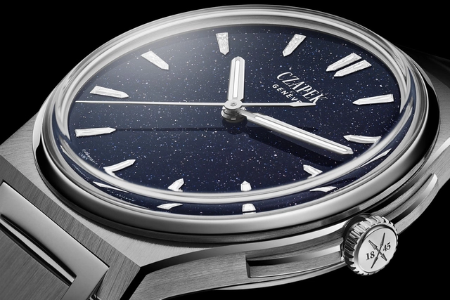 Wenn man sich die Zifferblätter der vier neuen Antarctique-Modelle von Czapek anschaut, meint man fast auf den Nachthimmel zu blicken. Nur, dass man hier nicht die gewohnten Sternbilder entdeckt, sondern eine unregelmäßige, aber gleichzeitig harmonisch wirkende Verteilung von metallischen Einschlüssen. Sie sehen aus, als wenn man mit dem Teleskop in die Fernen des Alls schaut, in denen man unbekannte Galaxien vage zu erkennen meint. Das Material, aus dem diese Zifferblätter bestehen, heißt Aventurin. Gemeint ist nicht der natürlich entstehende Aventurin-Quarz, sondern ein bestimmtes, von Handwerkskünstlern erzeugtes Glas, gefertigt nach jahrhundertealter Tradition. Die Glasart entstand, als einem Glasbläser auf der venezianischen Insel Murano im 17. Jahrhundert aus Versehen Metallspäne in eine abkühlende Glasmasse fielen. Das metallische Funkeln im Glas war so faszinierend, dass daraus eine neue Technik entstand.