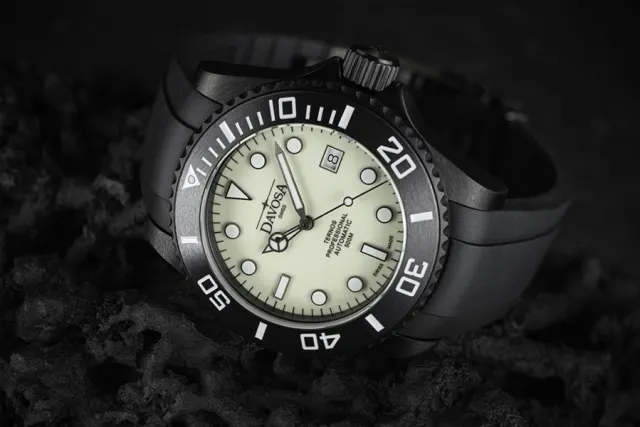 Während die meisten Hersteller üblicherweise den Einsatz von Leuchtpigmenten auf Ziffer und Zeiger reduzieren, setzt Davosa auf eine vollflächig beleuchtete Zifferblattoberfläche. Das auf 500 Stück limitierte Sondermodell Ternos Professional setzt dabei auf die Leuchtbeschichtungen Superluminova C3 und BGW9.Bei Tageslicht setzt das Modell auf einen warmen Beige-Ton, das an feinkörnigen Sand erinnern soll. In der Dunkelheit wirkt nach Aufladung das Zifferblatt in ultra-phosphoreszierendem, grünem Licht, das sich von Ziffern, Zeigern und dem Leuchtpunkt auf der Lünette absetzt, die in kühlem blauem Licht leuchten.
