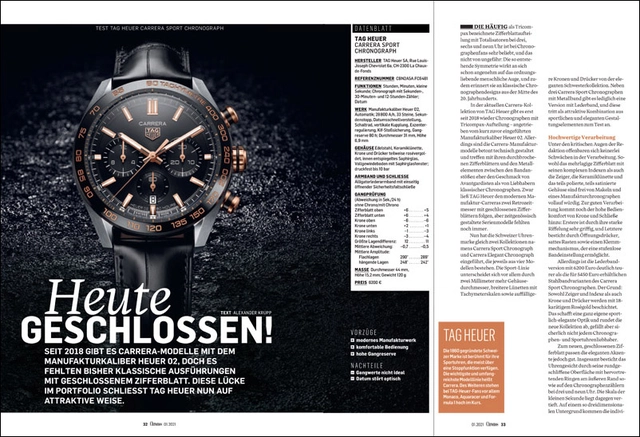 Mit dem Carrera Sport Chronographen bringt TAG Heuer endlich eine Manufaktur-Carrera mit klassischem, nicht skelettiertem Zifferblatt. Chronos hat den Stopper auf Herz und Nieren getestet.