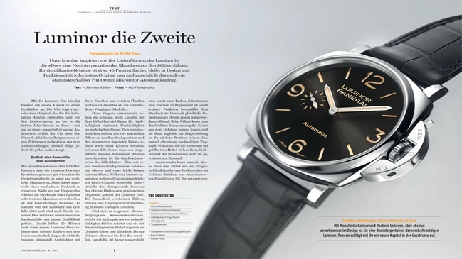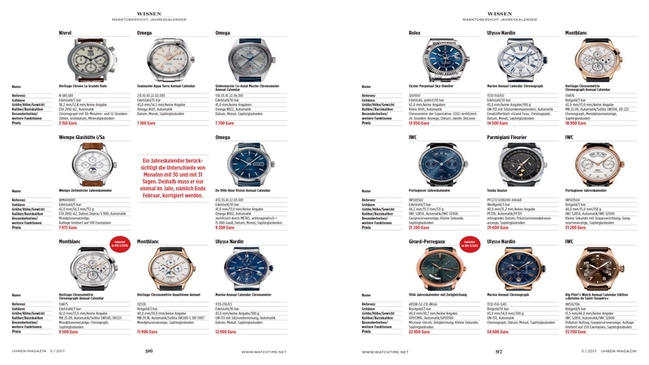 Das Angebot des Uhrenmarktes im Überblick: 25 Uhren mit Jahreskalender-Funktion zeigt die Marktübersicht aus UHREN-MAGAZIN 5.2017 mit Bild, Daten und Preis.