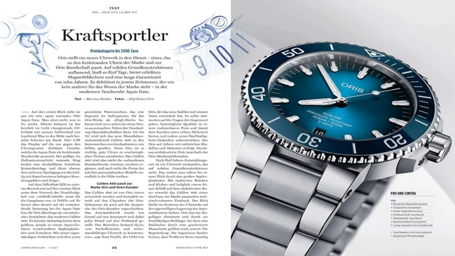 Oris stellt ein neues Uhrwerk in den Dienst. Auf soliden Grundkonstruktionen aufbauend, läuft es fünf Tage, bietet erhöhten Magnetfeldschutz, eine lange Garantiezeit und debütiert in der Taucheruhr Aquis Date. Wir haben die Uhr mit dem neuen Calibre 400 getestet.