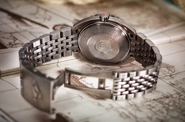 Die SUB 300T Clive Cussler bleibt den Kernmerkmalen der Kollektion treu und ist dennoch unverwechselbar. Das originelle, handgefertigte Zifferblatt, das an einen historischen Kompass erinnert, und die Verwendung von patiniertem Stahl bei der Uhr, dem Armband, der Faltschließe und der Dornschließe sollen dem Modell einen wettergegerbten Look verleihen, der perfekt an die Handgelenke der Abenteurer in einem von Cusslers Romanen passt. Der Patina-Effekt spiegelt die Geschichte von Schiffswracks und die Bedingungen wider, denen sie in der Tiefe ausgesetzt sind. Diese Uhr ist nicht nur ein Zeitmesser, sondern auch ein Symbol für Abenteuer und Entdeckerfreude, ein Verweis auf die Geheimnisse, die unter den Wellen verborgen liegen, und auf die Schätze, die auf ihre Entdeckung warten.