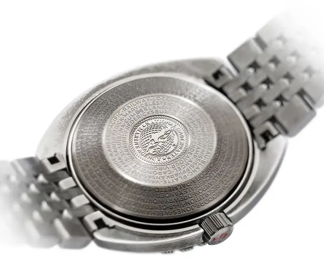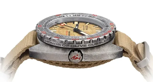 In die Lünettenflanke ist diskret die individuelle, exklusive Nummer jeder Uhr eingraviert, die ihr Einzigartigkeit und Authentizität bescheinigt. Das facettierte, strukturierte Gehäuse mit einem Durchmesser von 42 mm hat ein spezielles Design, das ganz dem Geist von Clive Cussler entspricht und zugleich an den Geburtstag des Autors (15. Juli 1931) erinnert: die Daten 7, 15 und 31 werden auf dem Zifferblatt in Rot angezeigt. Gleich, ob an Land oder auf See getragen – diese Uhr steht für furchtlosen Entdeckergeist und ungebrochene Abenteuerlust.