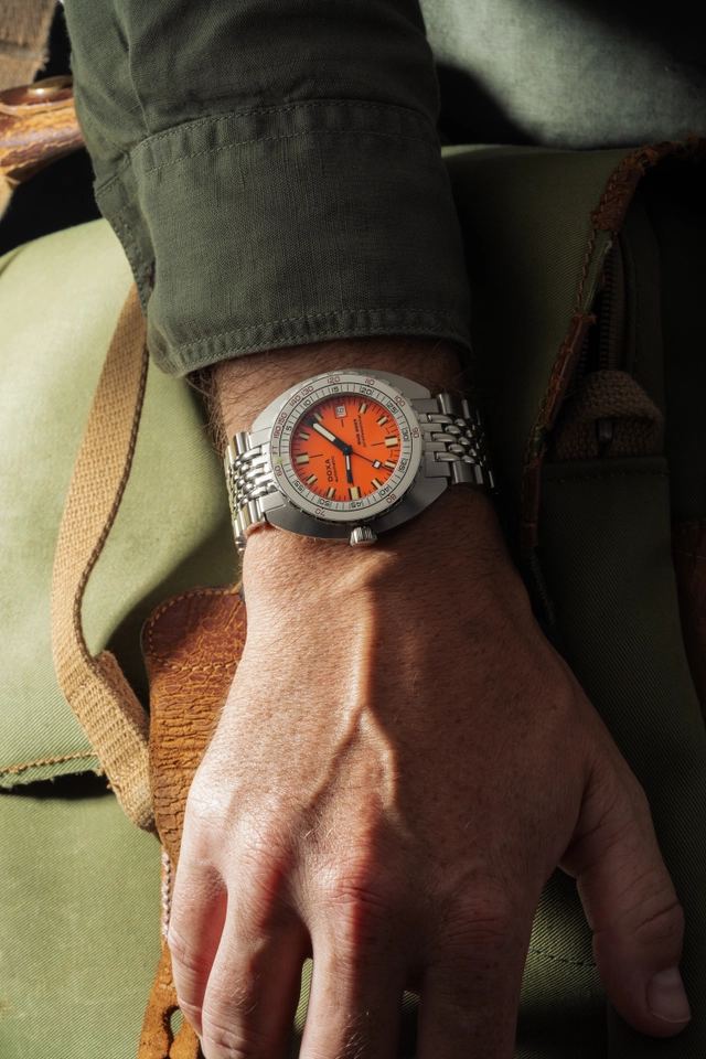 Die Doxa SUB 300T Professional Aristera weist das charakteristische# orangefarbene Zifferblatt ihrer berühmten Vorgängerin aus den 1960er-Jahren auf.