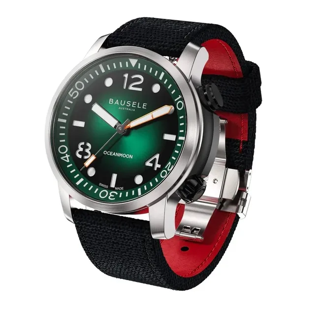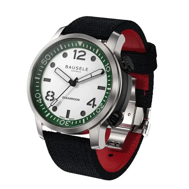 Die Bausele Ocean Moon V ist in den Farben Weiß + Grün (Algae Court), Schwarz (Orca Black), Meeresblau (Pacific Blue) und Grün (Emerald Green) erhältlich. Mit diesen neuen Ergänzungen erweitert Bausele seine beliebte Ocean Moon-Kollektion als vielseitiger Zeitmesser und Allrounder.