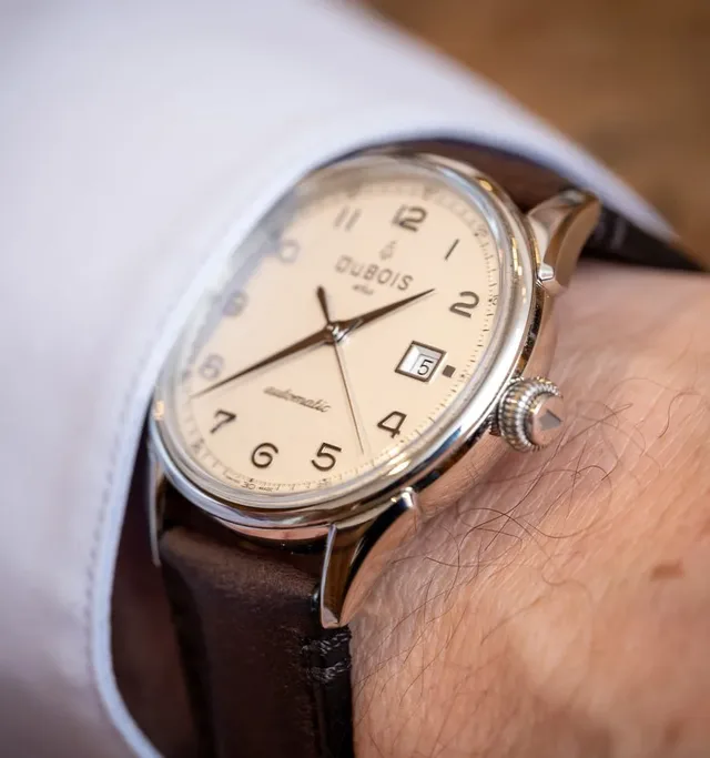 Die außergewöhnlichste Komponente, die das edle Gehäuse vollendet, stellt die Krone dar. Sie wurde zu einem hochkarätigen Bestandteil der DBF008 ausgearbeitet: Das Datum wird per Druck auf einen in der Krone integrierten Pusher eingestellt. Mit der DBF008 verknüpft DuBois et fils seine hohen Ansprüche an die Produktion mit Funktion, Ästhetik und Tragekomfort. Alle Arbeitsschritte werden im Jura umgesetzt. Damit ist jede DBF008 ein echtes, unverwechselbares Schweizer Modell.Verpassen Sie keine Trends und Innovationen. Abonnieren Sie hier den Newsletter von DuBois et fils.