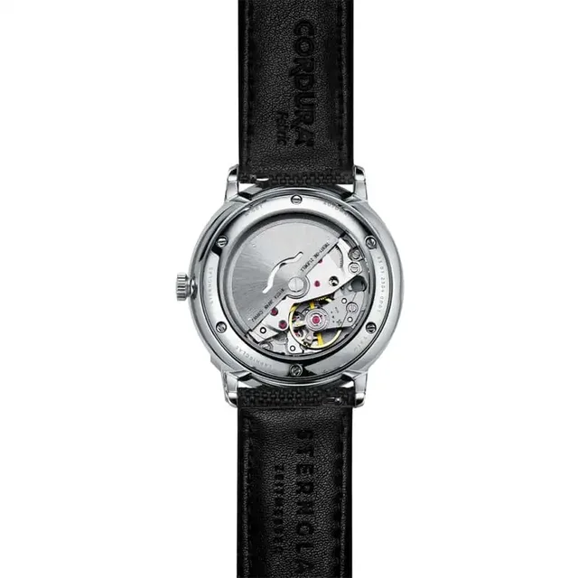 Die Naos mit ihrem vom Bauhaus inspirierten klaren Zifferblatt gehört zu den Bestsellern von Sternglas. Das Zifferblatt ist normalerweise weiß oder schwarz, es gab aber auch schon Sondereditionen mit rotem oder grünem Blatt. Die neueste Version setzt auf knalliges Gelb. Wie immer ist das Zifferblatt gewölbt und wird umschlossen von einem beidseitig entspiegelten und doppelt gewölbten Saphir-Deckglas. Farblich abgestimmt zum Gelb ist das steingraue Cordura-Nylonband, das Sternglas als extrem schweiß- und schmutzfest beschreibt. Dank eines Schnellwechselsystems lässt es sich leicht austauschen, ohne dass man ein zusätzliches Werkzeug benötigt.