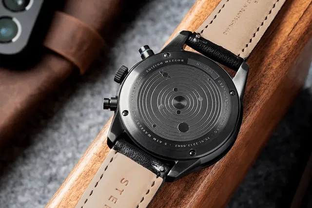 Neben der Stoppfunktion und der Lünette mit Tachymeterskala finden auch Anzeigen für Datum und jeweils 60 Minuten und 24h Platz. All diese Komplikationen wollen jedoch klug verbaut sein. Deshalb besteht das Zifferblatt des Tachymeters aus insgesamt 29 Einzelteilen und stellt damit das bisher komplexeste Zifferblatt aller Sternglas-Uhren dar.Der Tachymeter Edition Meteor wird von Haus aus mit schwarzem Armband und schwarzer Schließe geliefert. Durch das Schnellwechselsystem lässt sich dieses aber jederzeit mit wenigen Handgriffen austauschen – ganz ohne Werkzeug. Als Zugabe ist die Edition mit der edlen Gravur “Sonnensystem” auf dem verschraubten Gehäuseboden versehen. Darüber hinaus wird jedes Exemplar fortlaufend nummeriert.Weitere Informationen zum Sternglas Tachymeter Meteor erhalten Sie unter: www.sternglas.de