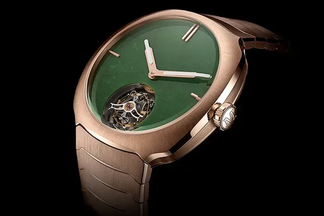 Die mystische Welt rund um Jade: H. Moser & Cie. rückt mit der Streamliner Tourbillon Wyoming Jade eine herausstechende Farbkombination in den Mittelpunkt– dank eines Edelsteines, der für seine vielfältigen Heilkräfte verehrt wird. Das Gehäuse aus 5N Rotgold mit einem Durchmesser von 40 mm umhüllt ein elektrisierendes Zifferblatt aus Jade, welches die Grenzen zwischen Natur und Uhrmacherkunst verschwimmen lässt.