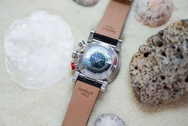 Bereits seit den 1930er-Jahren baut Hanhart Armbandchronographen für Piloten. Nun stellt die Schwarzwälder Uhrenmarke ein Modell vor, das den Marinefliegern huldigt, die bei Tag- und Nachtflügen über Wasser oder in unwegsamen Küstenregionen Höchstleistungen vollbringen.Die neue Primus Fly Navy ist mit schwarz PVD-beschichtetem oder mit unbehandeltem Edelstahlgehäuse erhältlich. Den Saphirglasboden ziert je nach Kundenwunsch entweder das Logo des Marinefliegergeschwaders 3 "Graf Zeppelin" oder das Emblem des Marinefliegergeschwaders 5. Dahinter ist das Automatikkaliber Sellita SW 510 zu erkennen, dessen geschwärzter Rotor die Aufschrift "Fly Navy" und die individuelle Nummer "xxx/150" zeigt. Die Produktionszahl 150 gilt für beide Modellvarianten zusammen, es handelt sich also um eine strenge Limitierung. (Hier geht es zum Hands-on einer weiteren limitierten Sonderedition.)