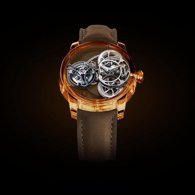 3. Artya Tiny Purity Tourbillon NanoSaphir Chameleon: Je nach Lichtsituation erscheint das Gehäuse aus NanoSaphir in einer von zwei Farben, z.B. Grün und Orange (exklusives Handaufzugskaliber, ca. 190.000 Euro)