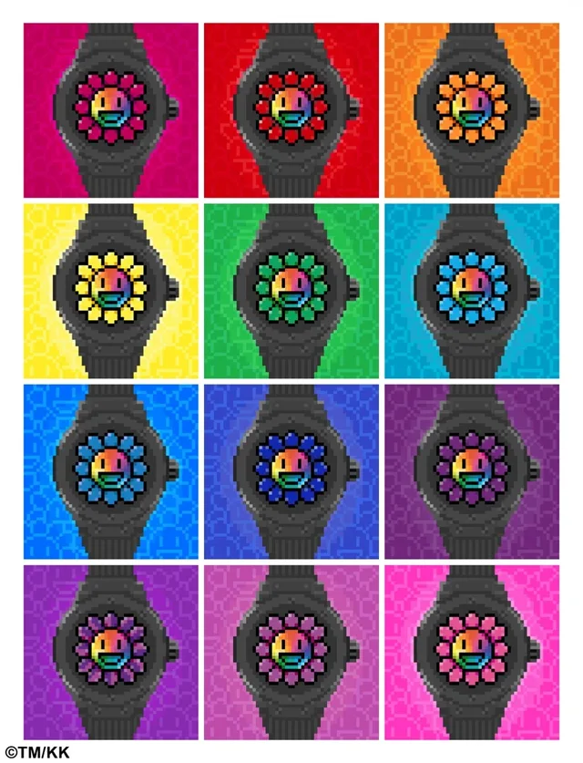 Hublot setzt seine Zusammenarbeit mit Takashi Murakami fort. Der japanische Künstler, der für seine lachende Sonnenblume bekannt ist, hat mit der schrillen Marke aus Nyon zuerst eine ganz schwarze Uhr aus Keramik und schwarzen Diamanten realisiert, ihr folgten ein Modell aus durchsichtigem Saphirglas mit einer bunten Blume, deren 12 Blütenblätter aus Edelsteinen in Regenbogenfarben bestanden.