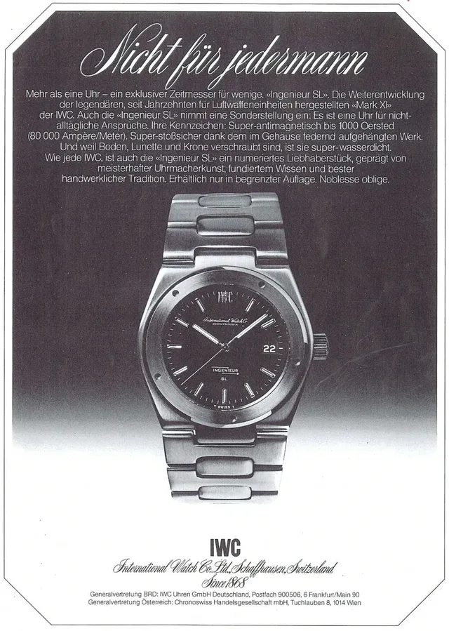 Anzeige für die IWC Ingenieur SL Ref. 1832, späte 1970er Jahre