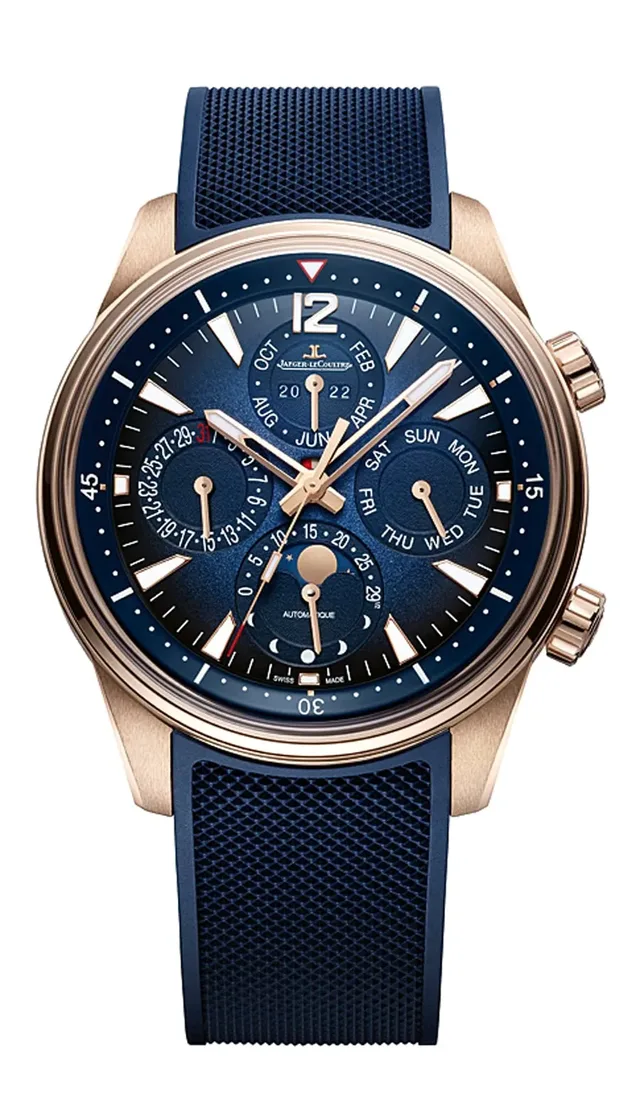Jaeger-LeCoultre muss aber für die Neuheit seinen Markenkern gar nicht verlassen. Denn zum einen gehören ewige Kalender und Rotgolduhren zum lang gepflegten Repertoire der Komplikationen und Materialien. Zum anderen hat sich die auf der eigenen Historie basierende Retrotaucheruhrenlinie Polaris seit der Einführung 2018 zu einem Bestseller und einer neuen sportlich-eleganten Linie entwickelt.Taucheruhr mit Komplikationen