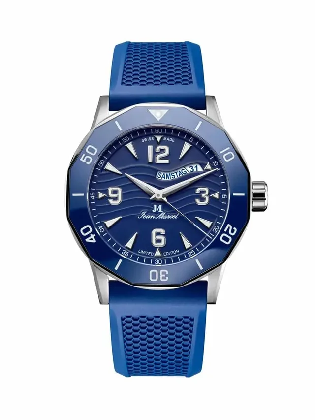 Jean Marcel stellt die neue Tropical Diver vor. Die Uhr ist eine Hommage an die Wunder der Unterwasserwelt. Mit einer Wasserdichtigkeit von 30 ATM (300 Metern) ist sie bereit, auf Abenteuerreisen in die Tiefen der Ozeane zu gehen. Das 42-Millimeter-Gehäuse ist aus Edelstahl 316L gefertigt, das kratzfeste Saphirglas auf der Vorder- und Rückseite der Uhr schützt nicht nur das Zifferblatt, sondern ermöglicht auch den Blick auf das Uhrwerk im Inneren. Um die Ablesbarkeit über und unter Wasser zu verbessern, ist das vordere Saphirglas zudem entspiegelt.