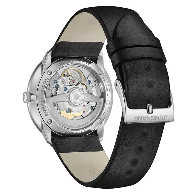 Junghans Meister fein Automatic Signatur gibt den Blick frei auf das Kaliber J800.1