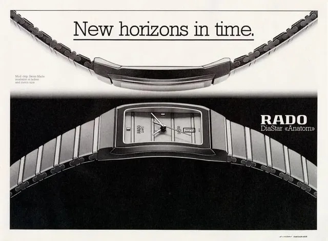 Rado: Werbung für die ergonomisch gekrümmet DiaStar Anatom, Mitte der 1980er-Jahre